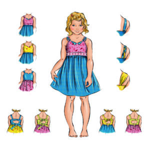 This multiple-size pattern fits girls from size 0 (6-12months) to 10 and features colour coding for ease of cutting.